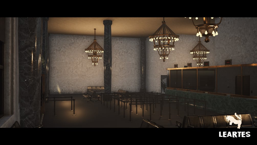 Bank Building / Interior, complete bank interior environment pack also includes the Building of the bank so you can easily change the size and look of the interior, there is an example Blueprint arranged for the Bank which is visible in showcase renders, and users of the pack can customize anything in the environment easily by using wall/ground/door/ceiling and props.