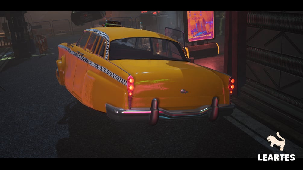 Driveable / Animated Retro Cyberpunk Hover Taxi (Unreal Engine)