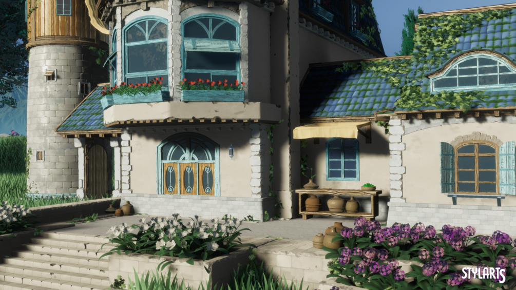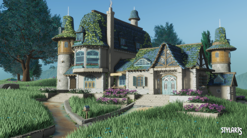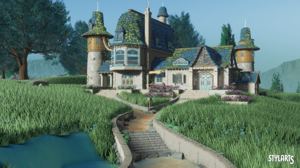 Stylized Azure Hillside with 96 Assets. There are many different types of Assets to help you create or polish your Environments.